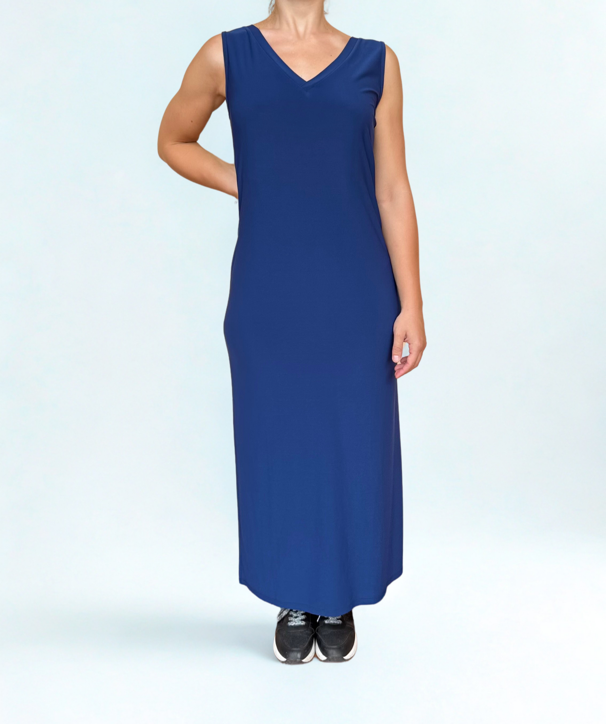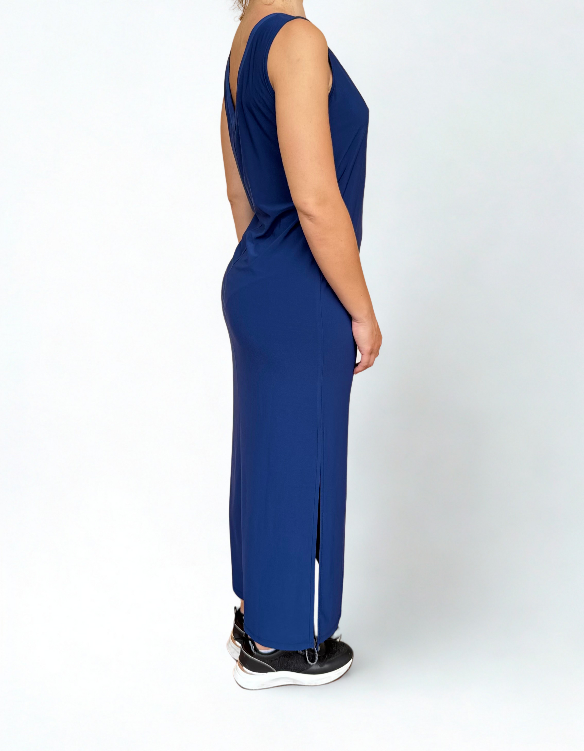Abito lungo blu in poliestere, smanicato