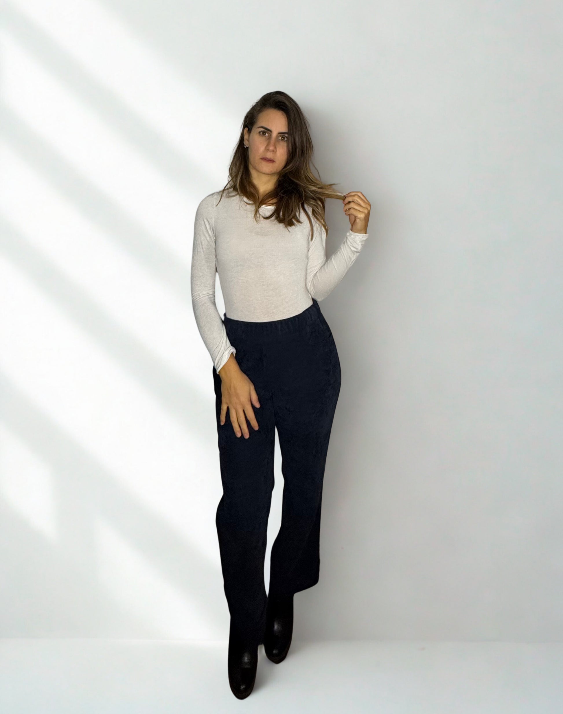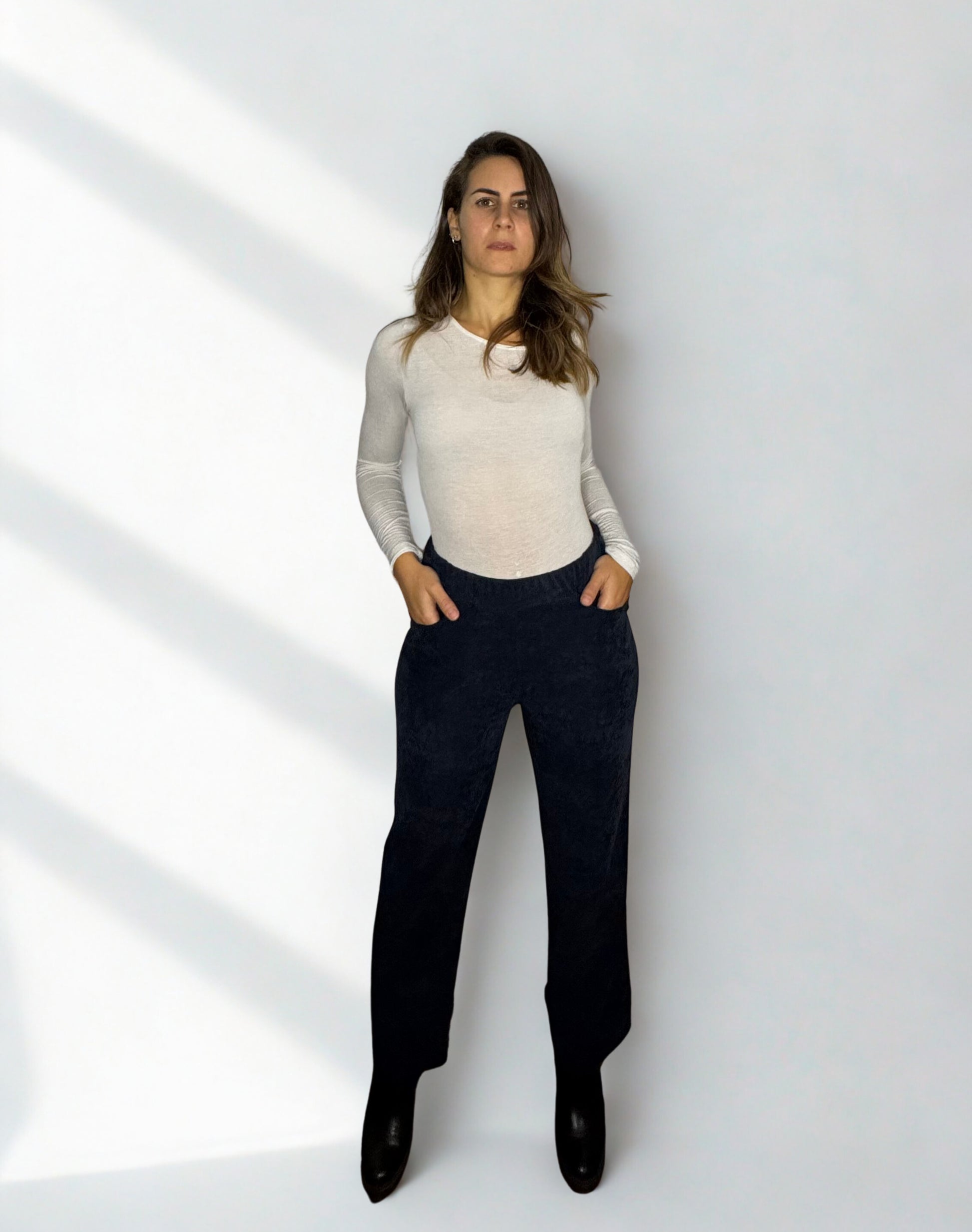 Pantalone blu 3/4 con tasche 92% poliestere, 8% elastan