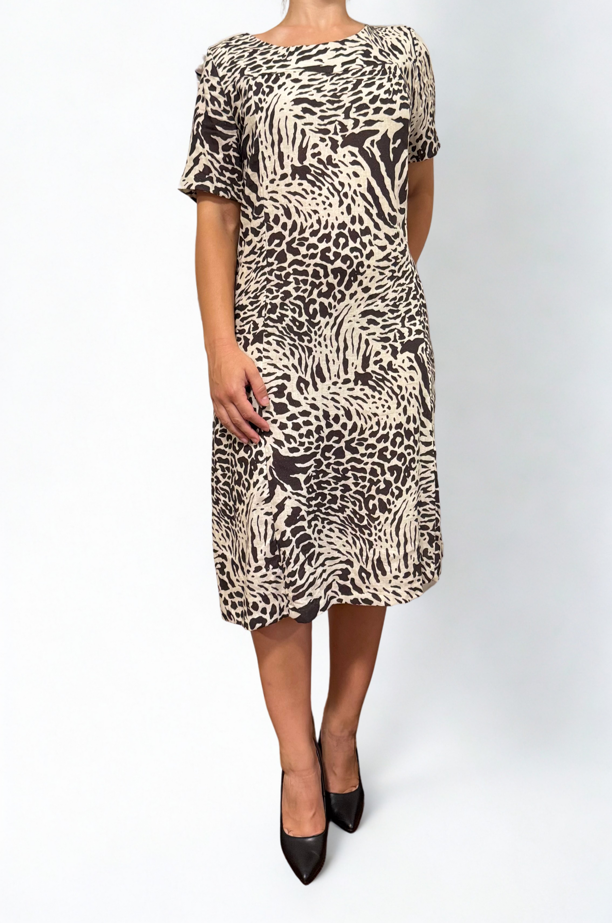 Abito maculato mezza manica svasato lino e viscosa