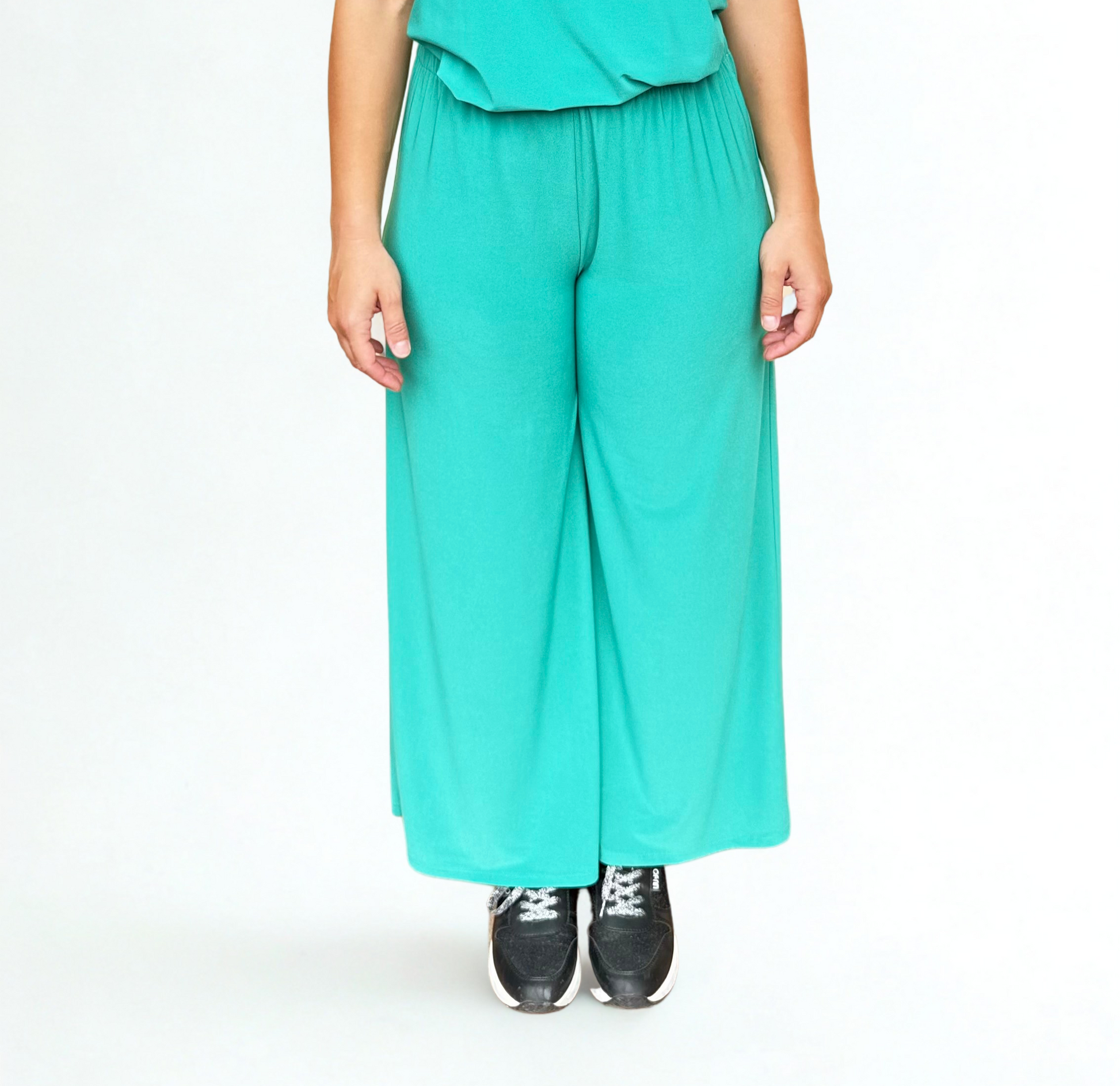 Pantalone verde corto base larga alla caviglia in poliestere